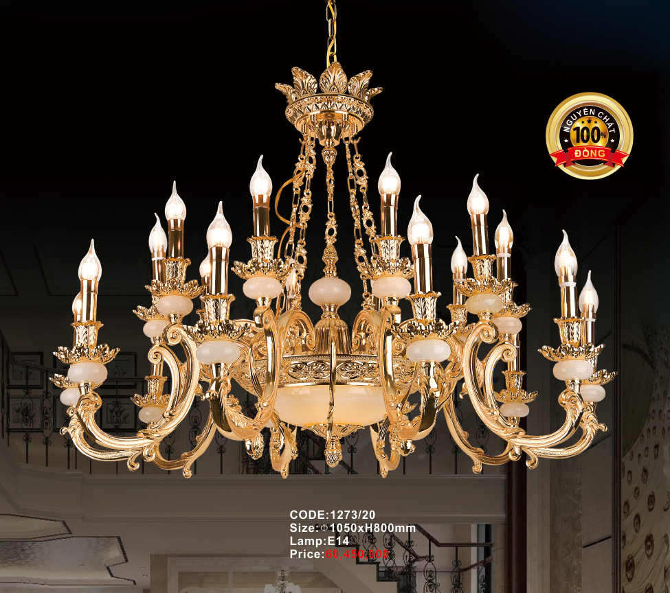 Đèn Chùm Đồng + Đá 1273/20